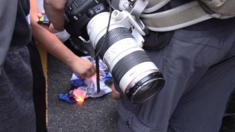 There is talk now in Palestine of a 3ed Intifada(uprising). Some of those who marshalled the march showed the kind of coordination that could well have been learned by participating in DC's own intifada (over George Floyd's murder) just under a year earlier. Marchers kept a tight front line, held key chokepoints like that bridge, and took the message to outdoor diners on Connecticut Ave as the day turned to evening. Smoke rose over Connecticut Ave as an Israeli flag went up in flames at one point.