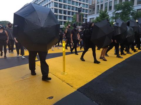 On the 4th of July, activists gathered at BLM Plaza, then marched through town on a "Fuck July 4, demand Black Liberation" Platform. Marchers also emphasized in chants that the US is stolen land and thus nothing to celebrate. Large numbers of bike cops followed the march, at least once at near contact range.