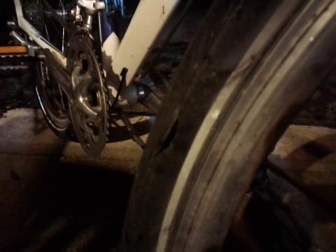 The (not in any uniform) man attempting to give orders was strongly defied, so he tried and failed to steal the bike. He was not strong enough to hold on, and uniformed cops made no move to help either side. When the videographer returned to the same spot after moving around for more video clips, the same man stabbed out the bike's front tire in a sudden move. Several minutes later MPD pursued him, no evidence of an arrest for the knife. He was wearing a US flag and a Marines T-shirt-on a day the Proud Boys were supposed to be in DC for Qanon's story that Trump was (again) supposed to be reinstated that day.
