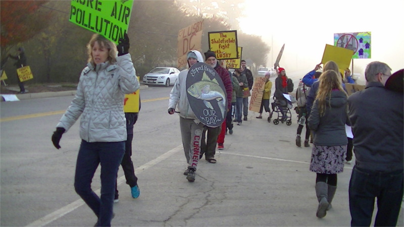 Protesting is a fundemental right under the 1st amendment of our constitution, and I applaud their efforts though I'm opposed to their rationale against fracking.  I wonder how many of these people would support my right to exercise our 2nd or 10th amendment?
