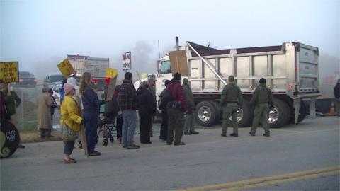 Confronting one of the few vehicles entering the site between 6 and 9 AM on Nov 10