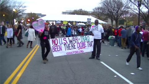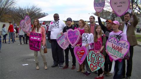 Code Pink protests at "Freedom Checkpoints" outside Concert for Valor