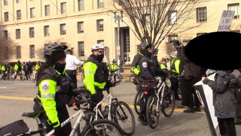 On the 21st of January, the neo-Nazi/open Fascist group Patriot Front attempted to sieze the lead position in the antichoice/forced birth "March for Life." At first they marched forward while MPD bike cops pushed back anti-Fascist and pro-choice counterprotesters. Soon, however, they had to withdraw to the sidewalk and make a left turn out of the march.