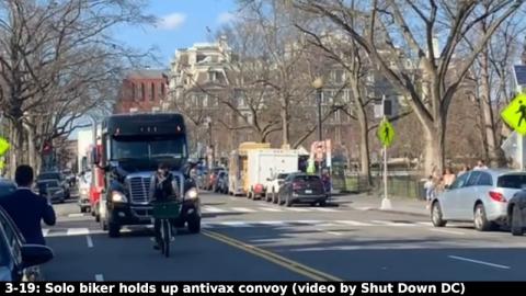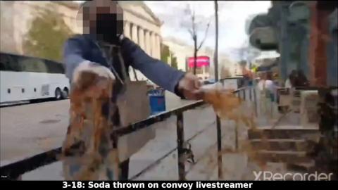 On the 18th, one of their livestreamers got a facefull of soda. The next day, a solo biker riding as slow as possible all but stopped the convoy near the White House. On March 21, another convoy livestreamer got his car covered in root beer and antifa stickers. After he got the root beer cleaned off, his car was found again and antifa stickers applied for the second time the following day!