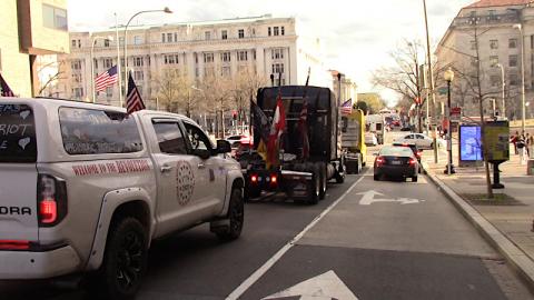 On the 25th of March, the so-called "People's Convoy" made a final loop though DC exiting by the 14th st bridge. These same vehicles were spotted earlier on Wisconsin Ave. There were relatively few vehicles in this segment compared to their initial March 6 appearance on the Beltway. A DC Indymedia reporter confronted convoy members about their support for Trump-and about the "bad cough" going around at Hagerstown Speedway.