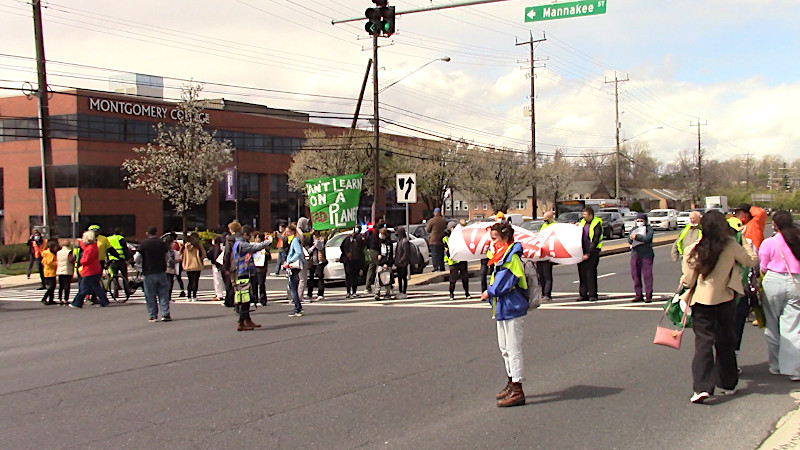 On the first of April, student activists backed by the MIGIZI indigenous Caravan and several Green groups blockaded MD Rt 355 in front of Montgomery College in Rockville, MD. The students are demanding that Montgomery County Public Schools entirely end their use of fossil fuels.
