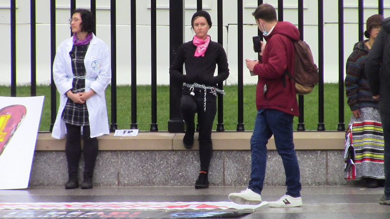 On the 6th of April, protesters with the "Scientist rebellion locked themselves to the White House fence with chains and U-locks. Police closed all of Lafayette Square in response, in a futile attempt to block photography of their extraction efforts. After about an hour and a half, the cops cut the locks and arrested at least five people.