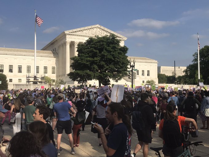 On the afternoon of the 3ed of May, pro-choice protesters returned to the Supreme Court for the 2nd time in less than 24 hours. This was a huge permit rally w space set aside for both pro-choice activists and antichoice bigots. So few of the antichoicers showed up that pro-choice activists got control of both areas.