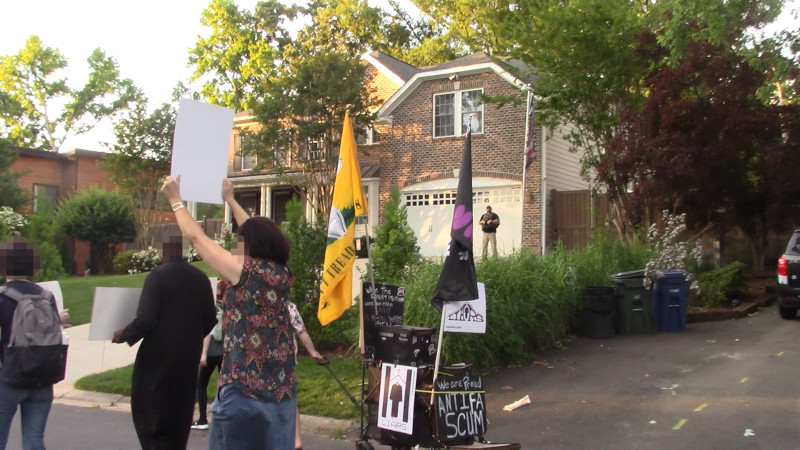 Video-protesters march by Alito's house as so-called "Freedom" flag flies 1 min