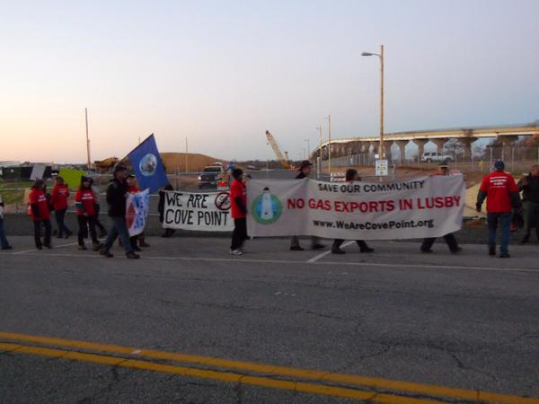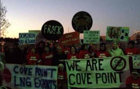 On the 1st of December, two residents of Lusby, MD and 5 supporters were arrested in Solomons, MD blocking the gate of Dominion's "offsite B" construction site. Dominion's mostly Texan workforce is scrambling to complete this pier before a Dec 16 moratorium on construction in the water that lasts until mid-March. The Solomons pier is intended for loading "megaloads" from barges onto trucks to travel to Dominion's fracked gas export site at Cove Point, MD.