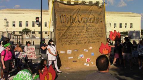 On the last day of June, the Supreme Court released another atrocious ruling, this time gutting the ability of EPA to control CO2 emission from fossil fuel burning power plants. Hours later, protesters staging a "Tour of Shame" unfurled a "We the Corporations" preamble to a new Constitution and marched it from SCOTUS to the nearby homes of several GOP Senators.