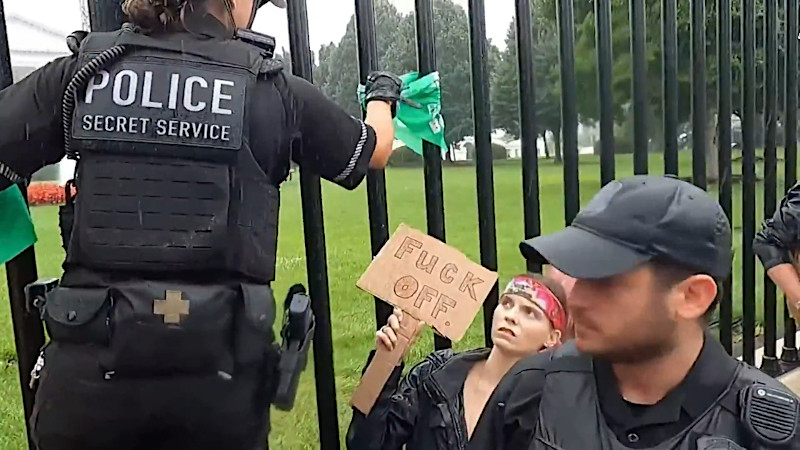 Women's March occupies White House sidewalk, ties green cloths to fence, no arrests