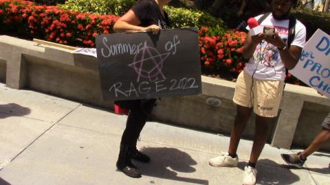 Protesters condemned not only the fascists in "Moms for Liberty" but also the fascists on the Supreme Court and Florida's fascist governor DeSantis. DeSantis (sometimes called DeSatan) spoke at the convention the previous day, thus the relevance of targetting him directly from the protest. The governor's agenda in the schools and on LGBTQ issues is essentially the same as that of so-called "Moms for Liberty.