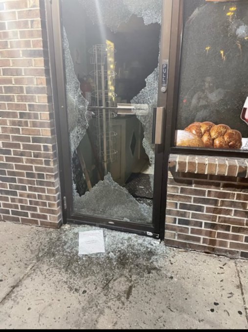 Hate graffiti scrawled on Uprising Cafe and Bakery in Lake In The Hills, Chicago.