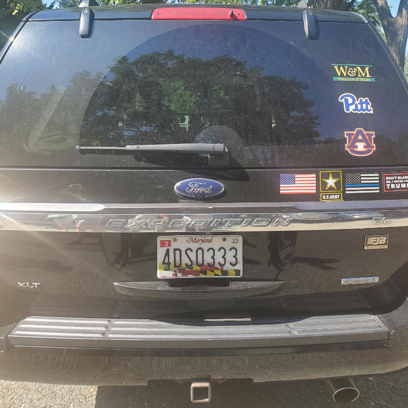 One or more of the extreme-right protesters in Kensington, MD showed up in this car. Multiple extreme-right stickers on display