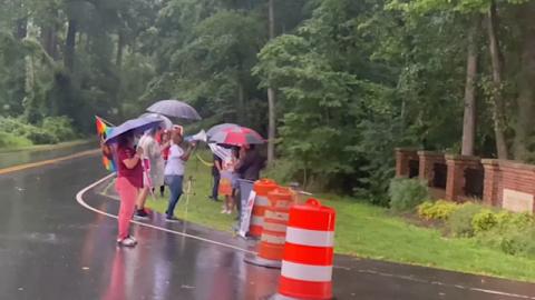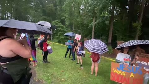 On the 29th of July, drenching rains in Northern Virginia failed to stop the Friday protest at the entrance to "Justice" Thomas's posh private roaded community. Protesters are demanding he be impeached for the role both he and his wife Ginni Thomas played in supporting Trump's Jan 6 coup attempt. This would remove one anti-choice "Justice" from the court.