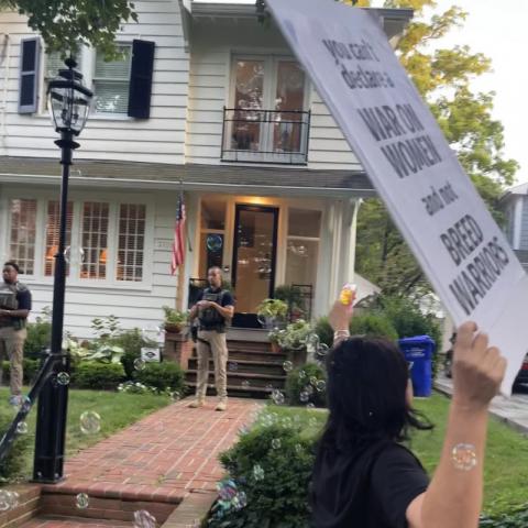 On the 24th of August, protesters returning to the weekly Kavanaugh and Roberts home demos brought a twist: children's bubble guns. With police having threatened arrest for the drums and bullhorns normally used, protesters brought out something else to show how ridiculous these rules are.