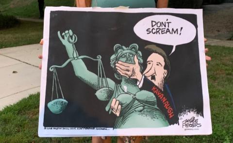 On the 31st of August, a Montgomery County cop harassed a Black woman-and ONLY at a Black woman-for momentarily standing still in front of Kavanaugh's house during the protest there. He threatened a no-warning arrest if she again stood still. Another (white or white-passing) protester repeated this "offense" and got no reaction from the same cop or any of the others