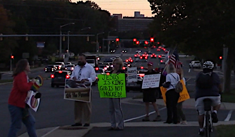 On the 6th of October, a meeting of the Fairfax County school board at Luther Jackson Middle School included an agenda item of favorable concern to transgender students. A rally was held prior to the meeting in support of this agenda item and more generally to protect trans and gender expansive students from the current wave of hate and attacks. Only a half dozen presumed Christian Nationalists dared counterprotest.