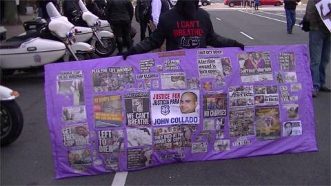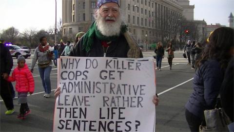 On the 13th of December, a march estimated by some at around 50,000 people from Freedom Plaza to the US Capitol protested the recent string of police murders of unarmed young African-American men. The "Hands up, don't shoot" and "I can't breathe" chants were heard often, referring to the police shooting of Michael Brown in Ferguson and the chokehold death of Eric Garner in NYC.