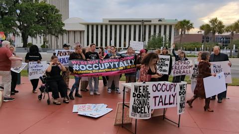 Speakers including elected members of the state house, (one of whom was arrested on April 3 at the initial Occupy Tallahasse location by City Hall) warned that this is extreme antiabortion/forced birth and anti-trans/LGBTQ agenda is not just intended for Florida but the entire US. It is to be DeSantis's springboard to the US Presidency at the expense of genocide of those who don't look, act, and pray as he does.