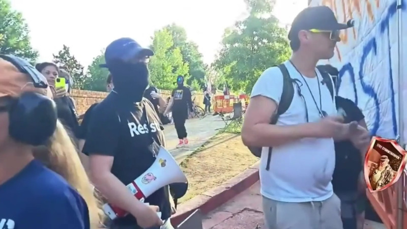 Although cops had (as the law requires when no permit exists) let the counterprotesters stay in the spot they took first, they also took no action against the right winger who smashed a counterprotester's glasses. The attacker just barreled into the counterprotest, screaming something about judges and then destroying the glasses. As the fash showed up, police had used some barricades to set separate zones for each side, but with both on the same side of the street this did not prevent Fascist violence. Since the counterprotesters had arrived first, thus had the legal right to the close up spot, and the J6'ers have a reputation for violence, it would have been in the interests of public peace to confine the pro-J6 protesters to the other side of the street.