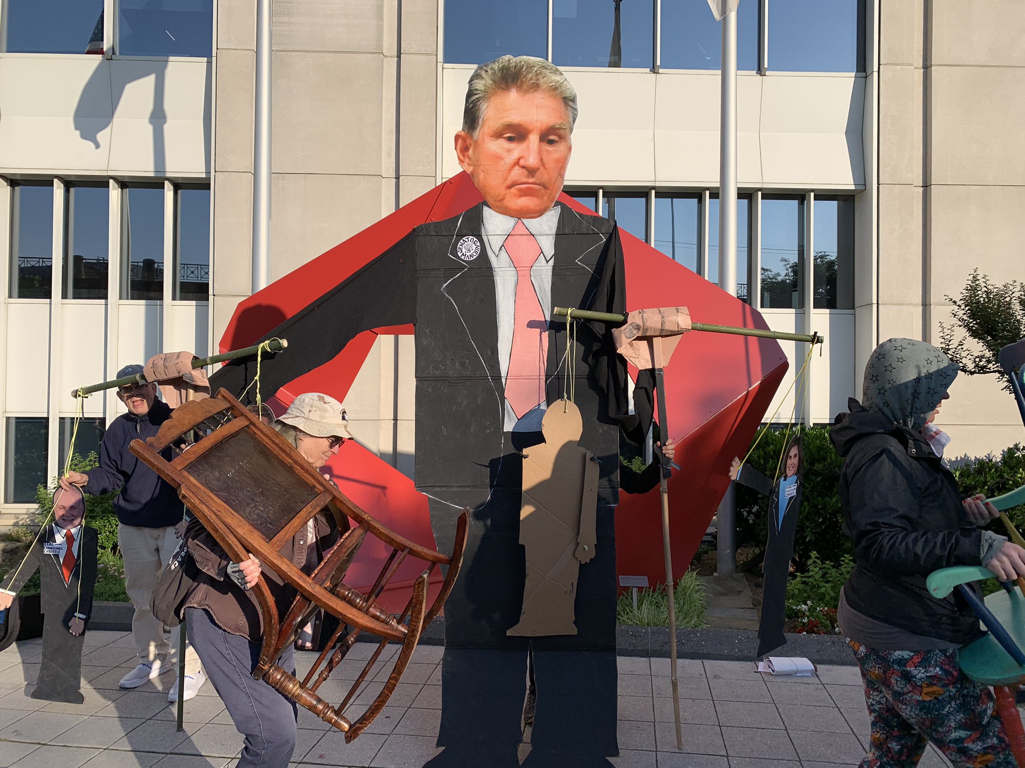 On the 18th of May, Beyond Extreme Energy and 3ed Act backed up frontline activists, descending on the monthly meeting of FERC, the Federal Energy Regulatory Commission. Protesters blocked the driveway with rocking chairs and protrayed the Commissioners as puppets of W Va Senator Joe Manchin. Manchin is still promoting coal, fracking, and the infamous Mountain Valley Pipeline or MVP.