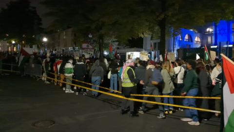 Palestinians and allies hold furious protest for Gaza at Israeli Embassy