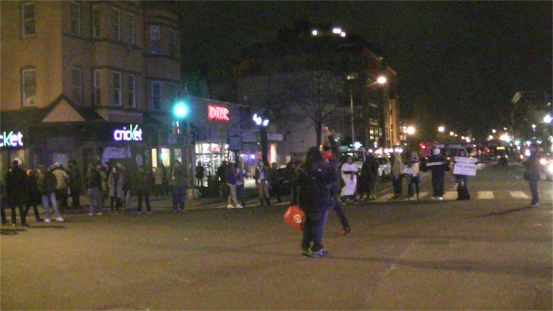 On the 12th of March, Metro Transit Police shot and killed a man in the tunnels near the Potomac Ave station. They have refused to identify him and some media reports didn't even admit the shooting was by a cop! The following night (March 13), DC Ferguson met at Chinatown, got on the Metro, then got off at U st to block the intersection of 14th and U streets. UPDATE Sat 3-14: One person was arrested by police at the end of the action-again as it was ending and people were dispersing. This is the second time this has happened, last time around Montgomery County police essentially jumped out on an alleged organizer after the New Years Day protest inside Wheaton Plaza had ended.