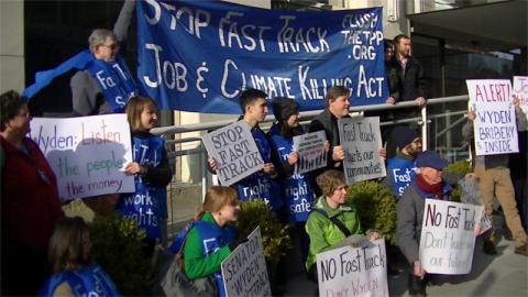 Fundraiser for pro-TPP Sen Wyden derailed by anti fast track protest