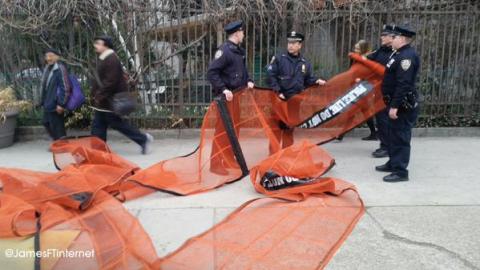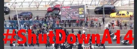 On the 14th of April, #ShutDownA14 protests took place in many cities demanding an end to mass incarceration and the ongoing wave of extrajudicial executions by police. In New York City, police turned violent after protesters blockaded the Brooklyn Bridge. Two serious injuries were reported, and police rolled out orange nets to arrest everyone in target areas just like durng the RNC or when Occupy Wall St blocked the exact same bridge.