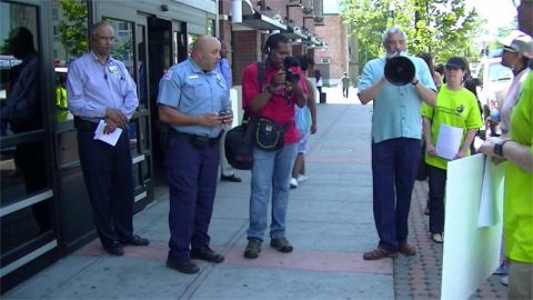 On the 1st of June, labor activists and Wal-Mart associates protested outside the Ga Ave Wal-Mart. They were demanding that Wal-Mart re-instate the over 2,600 associates fired when five stores across the US were closed for "plumbing repairs." Pico Rivera, CA, one of the offending locations, was the target of Our Wal-Mart's very first walkout over wages. The closings appear to have actually been illegal retaliation for the demands for better wages and full-time or at least predictable schedules.
