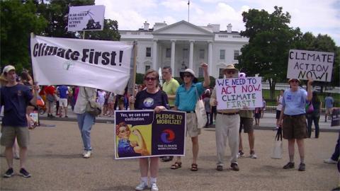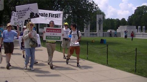 On the 14th of June, Climate First! hosted one of a national series of Climate Mobilization marches demanding that the same level of effort put into the Second World War be applied to climate change. Activists marched from the WWII memorial to the White House, some with WWII style "Rosie the Riveter" posters concerning climate change.