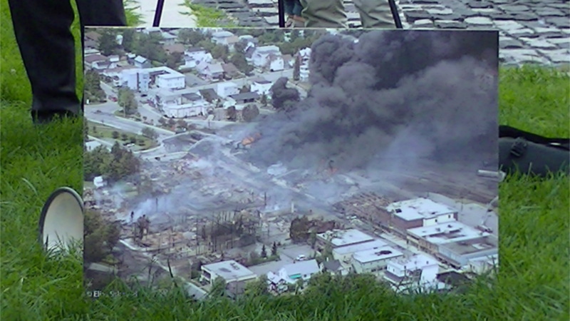This is what happens when a "bomb train" crashes and burns in a town or city