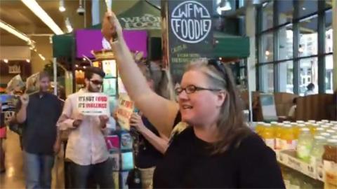 On the 15th of August, vegan protesters from Direct Action Everywhere (DXE) protested inside first a Starbucks and then a Whole Foods in Baltimore. In both cases the issue was the sale of animal products. At Whole Foods extra attention was paid to the fake "cruelty-free" marketing Whole Foods is known for. Yes, people are protesting at Starbucks again...