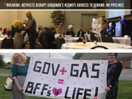 The activists disrupting the Governor's appearance represented Blue Ridge Environmental Defense League, SEED: Stopping Extraction and Exports Destruction, We Are Cove Point, and FANG: Fighting Against Natural Gas.