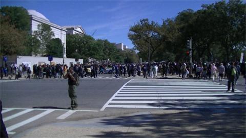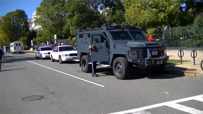 On the 10th of October, the All-African People's Revolutionary Party held a march from Malcolm X Park, past the White House, to the Mall. The Mall was the site of the massive "Justice or Else" rally held on the anniversary of the 1995 Million Man March. Many at the Justice or Else rally spoke on the crisis of ongoing police murder of African-American youth. Earlier in the week, the head of the US Capitol Police was forced to apologize for an email predicting "violence" at this event(there was none to be seen). The Park Police did not seem to take any overtly aggressive action but did have an armored vehicle on site, along with a long line of horse trailers in reserve.