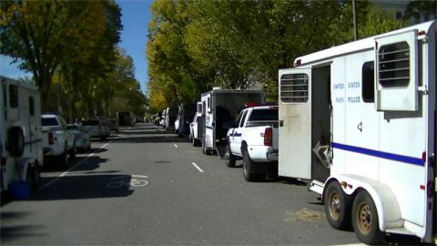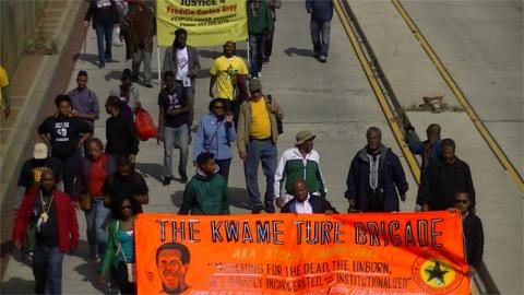 Video clips of the Kwame Ture Brigade march plus horse cops and armored vehicle