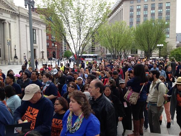 All of this preceded a converging march down Penn Ave to Upper Senate Park, starting from multiple locations. By afternoon, some of the participants were reported to by visiting members of Congress in person to demand an end to deportations, an increase in the minimum wage, and and end to the "tip credit" that allows reducing wages paid to employees who may (or may NOT) be tipped by end customers.