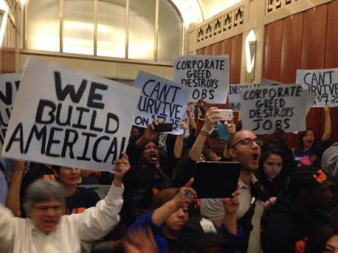 Elsewhere protesters stormed the Koch Brother's DC headquarters's ritzy lobby and General Electric (GE). At GE the subject of the action was a corporate tax loophole known simply as the "GE loophole" due to its use by that company to evade paying taxes.