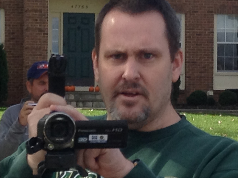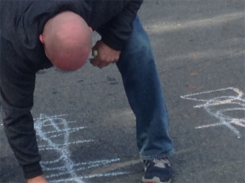One of Stephen Skinner's neighbors trying to disrupt the protest by chalking over protester's chalk