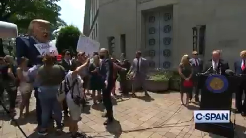 On the 27th of July, reps Marjorie Taylor Greene, Matt Gaetz, and several others from the MAGAt wing of the GOP attempted to hold a press conference in front of the Dept of Justice concerning the January 6 assault on the US Capitol and apparently on ensuing legal cases. Anti-Trump protesters shut them down cold, forcing an end to the press conference.