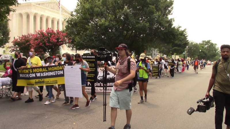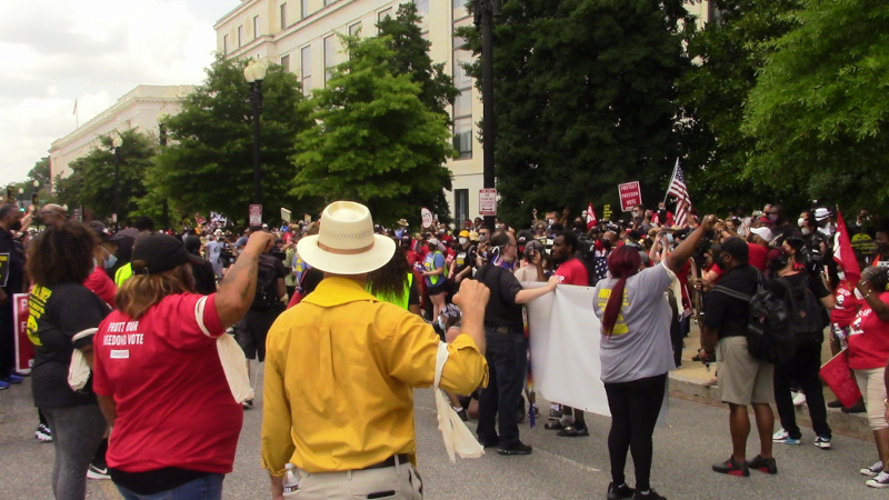 On the 19th of July, the second of a sequence of "Moral Mondays" protests by the Poor People's Campaign included a major civil disobedience and more than 75 arrests at a blockade on 1st st NE by the US Capitol. Demands included an end to the filibuster, full restoration of the 1965 Voting Rights act, new Federal voting rights legislation, and an increase in the minimum wage to $15 an hour.