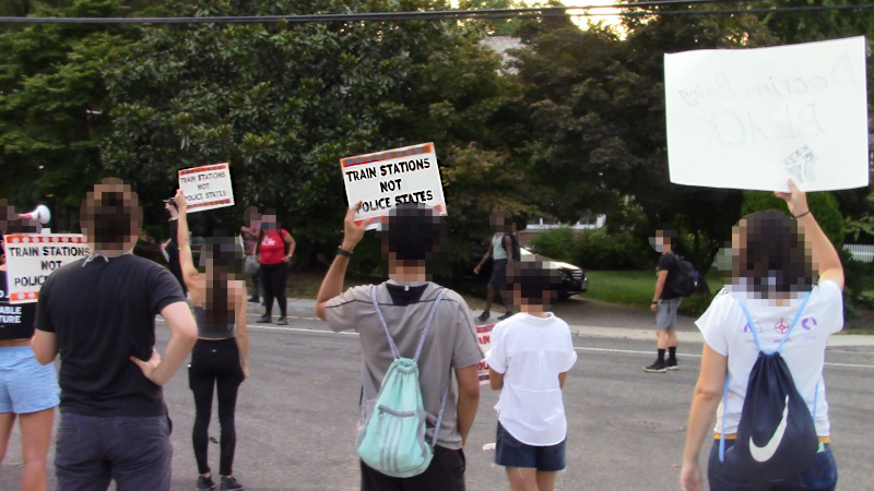 On the 28th of August, after a long day of voting rights marches, marchers again assembled at NY Ave and FL Ave NE for An'Twan Gilmore. After a feint downtown, marchers headed E on NY Ave and descended on MPD's 5D headquarters. When they got there, cops stood wall to wall to defend their precinct but avoided a fight. Possibly they know they are guilty and don't want to trigger further unrest.