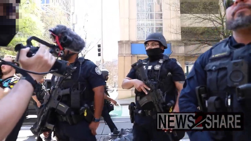 Heavy cop presence some with AR-15 rifles at Atlanta Stop Cop City march