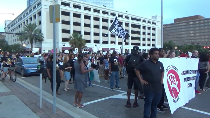 Jacksonville protest against Saturday's racist murders calls out DeSantis as a Nazi