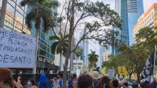 Protesters in downtown Miami against DeSantis