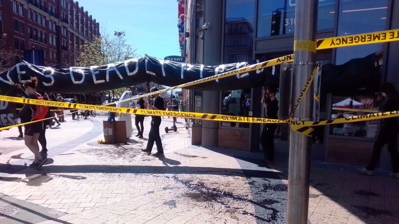 On the 27th of March, Extinction Rebellion-DC first took a mock pipeline/Black Snake into Chase Bank, then dumped mock "oil" on the sidewalk outside the bank.Chase Bank, like Citibank and Bank of America (also called out on March 27) is a major funder of Enbridge, builder of the "Line 3 replacement" pipeline threatening to destroy Chippewa land in Minnesota.