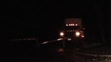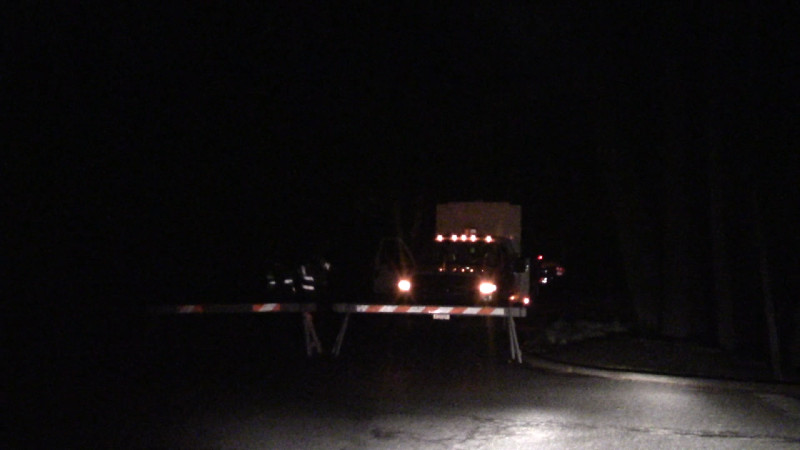 Park Service truck behind Glover Road roadblock for "deer removal"