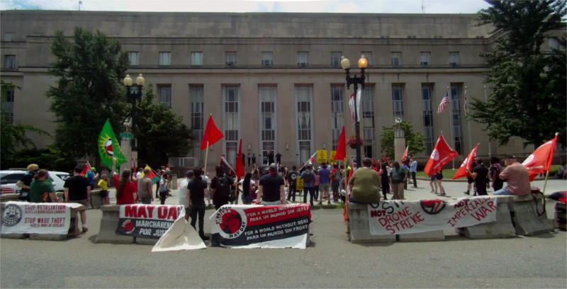 DC's Mayday march was a two-part affair, beginning with an immigrant march from Mount Pleasant that linked up with a worker's march at Malcolm X Part before continuing to Freedom Plaza and a much larger immigrant rally at the White House. A third march started at Dupont Circle and proceeded directly to Lafayette Park. The Worker's March was marred by harassment from both neo-Nazis and police. Two protesters were detained but both were released as police could not find or fake any kind of probable cause.
